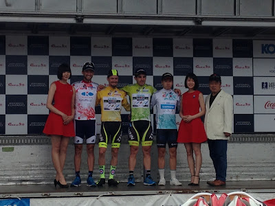 千枚田で登りを見たあとはゴールを見ようと、Finishの熊野倶楽部へ移動。ちょうどチームメンバーのHさんと会えたので、先頭交代をしながら熊野倶楽部へ。熊野倶楽部でスタッフで仕事されているSさんにご挨拶。プロのゴールまでHさんと一緒にアイスを食べに行きました。ペチャクチャ喋りながら食べていたら周りから人気がひいていく。はっと気づいた。そう、ゴールです。慌ててコースまで出ました。こちらもギリギリでゴールスプリントを見れました。1位はチーム右京のプジョル選手、2位はKINANのマルコス選手。もちろん地元のKINANを応援しているわけですが、あとちょっとのところで残念でした。登りゴールは大変だ!