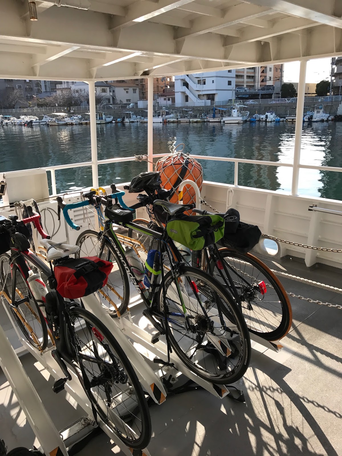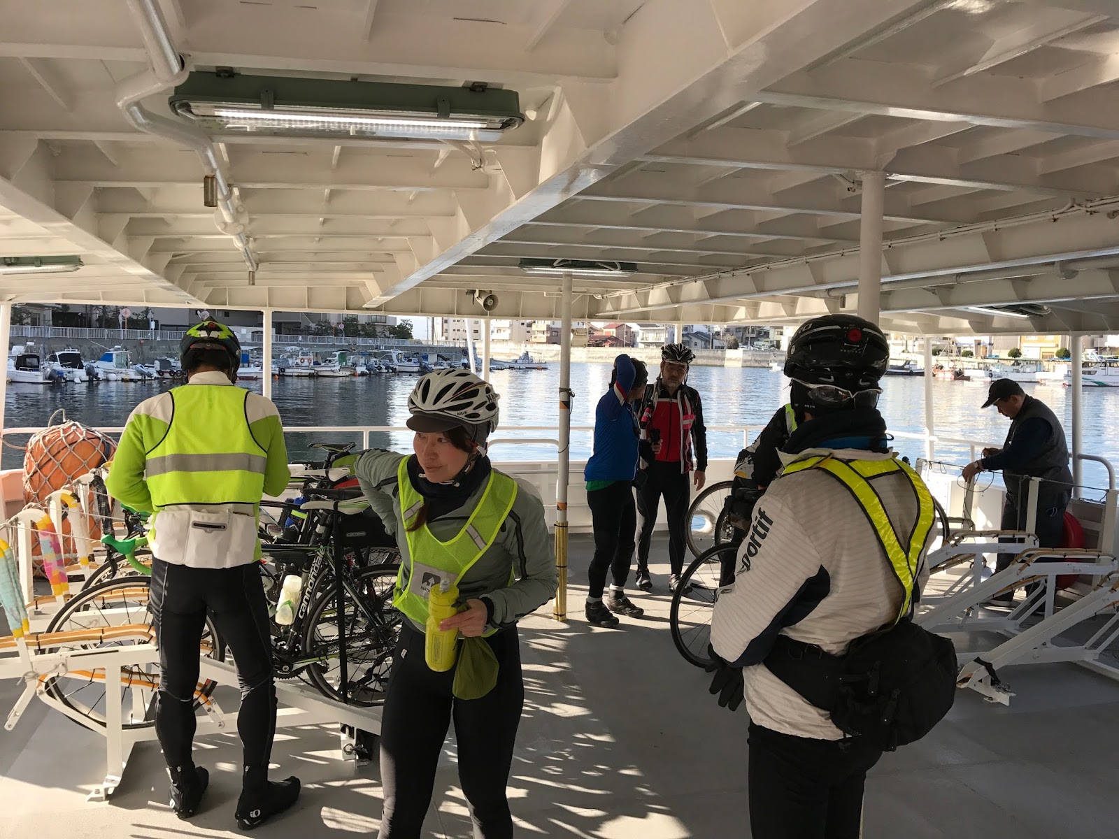 マリンあわじが入港してきて乗船。ちゃんと自転車固定できるようになってるんだね(*-`д-;)ス、スゲェ…。